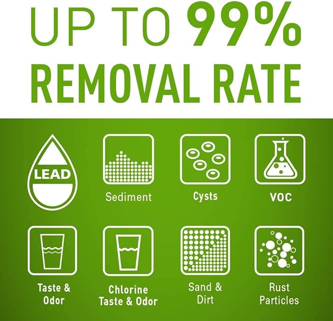 - COMMERCIAL GRADE WATER FOR YOUR HOME - Reduces particles as small as 0.5 micron in size, Chlorine Taste & Odor, Lead, and Volatile Organic Compounds (VOC), including THMs. NSF/ANSI Standard 53 certified to reduce cysts such as Cryptosporidium and Giardia by mechanical means. NSF/ANSI Standard 401 certified to reduce Microplastics.