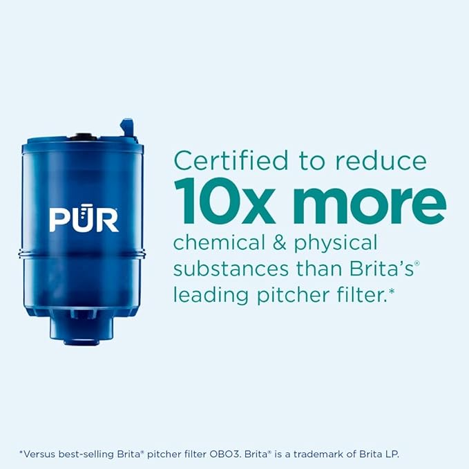- 3-IN-1 POWERFUL WATER FILTRATION. PUR is the only brand certified by WQA and NSF to reduce 70 chemical & physical substances, including lead and microplastics commonly found in your drinking water.