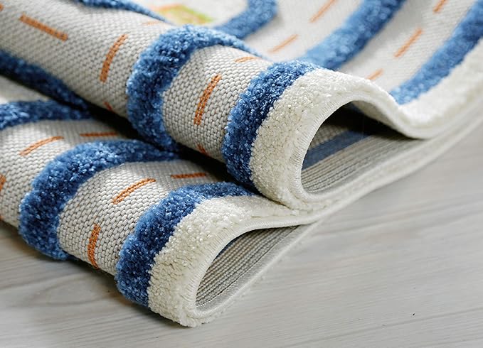 - 3D PLAY MAT: Thick, 3-dimensional quality mat provides a play area for your youngster; Rug features an array of colors with blue borders; Made in Turkey; Material: Polypropylene; Dimensions (L x W): 59 x 39 inches; Weight: 8 pounds