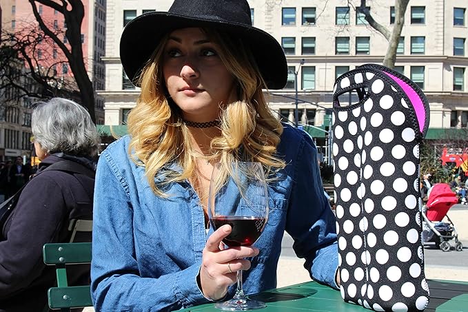 BUILT 2-Bottle Stain Resistant Neoprene Wine/Water Bottle Tote Big Dot Black & White 2B-BBW