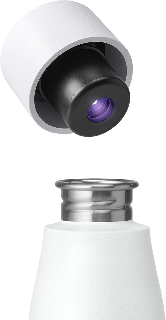 LARQ Bottle Movement PureVis 24 oz- Lightweight Self-Cleaning and Non-Insulated Stainless Steel Water Bottle with UV Water Purifier | Reusable & Travel Friendly, 1-Year Warranty, White/Dune