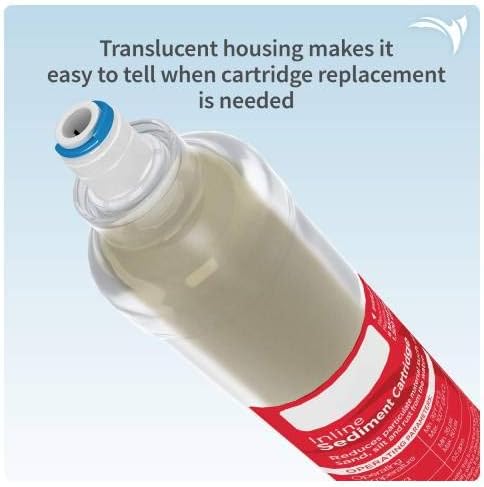 - TRANSLUCENT FOR EASY VIEWING: This sediment filter has a translucent polyethylene housing for easy viewing of the cartridge to know when it's time to replace. Replace every 3-6 months or 1,500 gallons of total water passing through the cartridge.