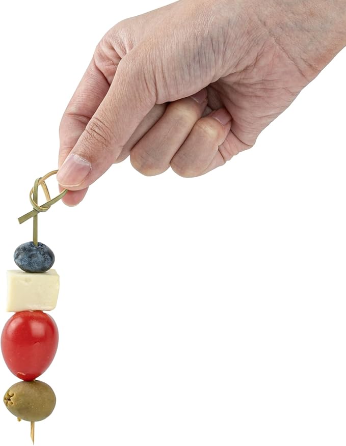 Restaurantware 4 Inch Twisted Bamboo Skewers 1000 Sturdy Disposable Bamboo Food Picks - Sturdy Looped Knot Bamboo Appetizer Picks Sustainable For Serving Appetizers and Cocktail Garnishes