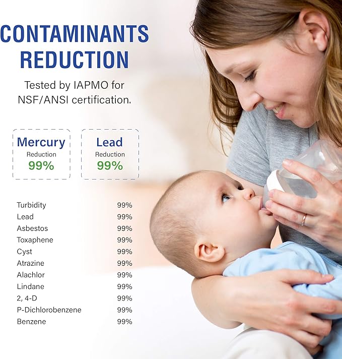 - Best-In-Class Contaminant Reduction - Reduces lead, chlorine, VOC’s, cysts, mercury, atrazine, asbestos, benzene, and more!