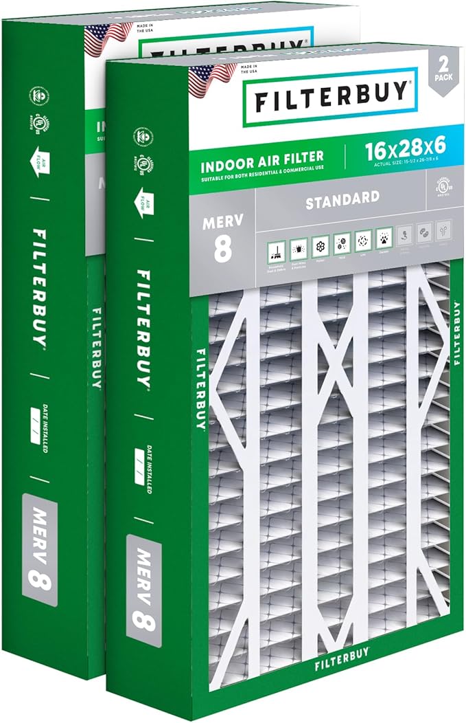 Filterbuy 16x28x6 Air Filter MERV 8 Dust Defense (2-Pack), Pleated HVAC AC Furnace Air Filters Replacement for Aprilaire Space-Gard 401/2400 & Lennox (Actual Size: 15.50 x 26.88 x 6.00 Inches)