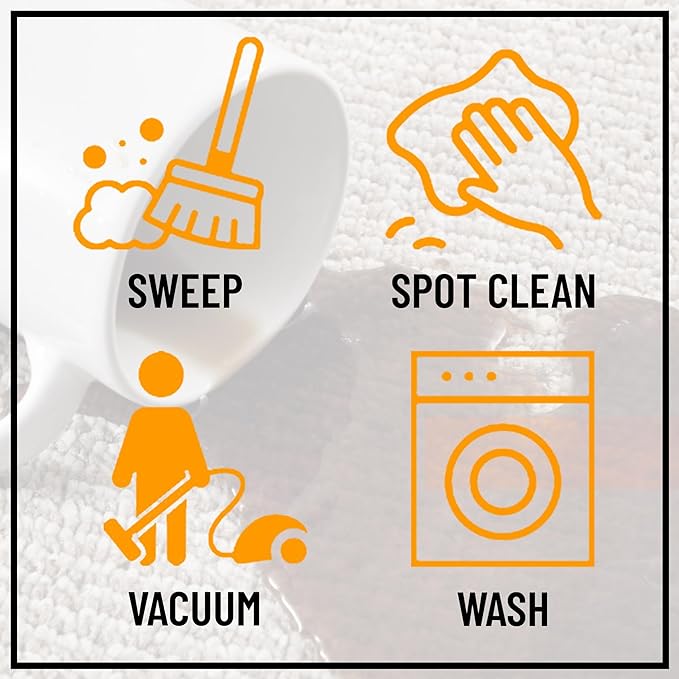 - [EASY CARE]: Stress free cleaning includes regular vacuuming (no brushes/rollers) and gently spot cleaning out minor stains with mild detergent or carpet cleaner. Creases and curling should flatten with 5-7 days of regular use. To expedite this process, reverse roll the corner with the crease and gently apply pressure.