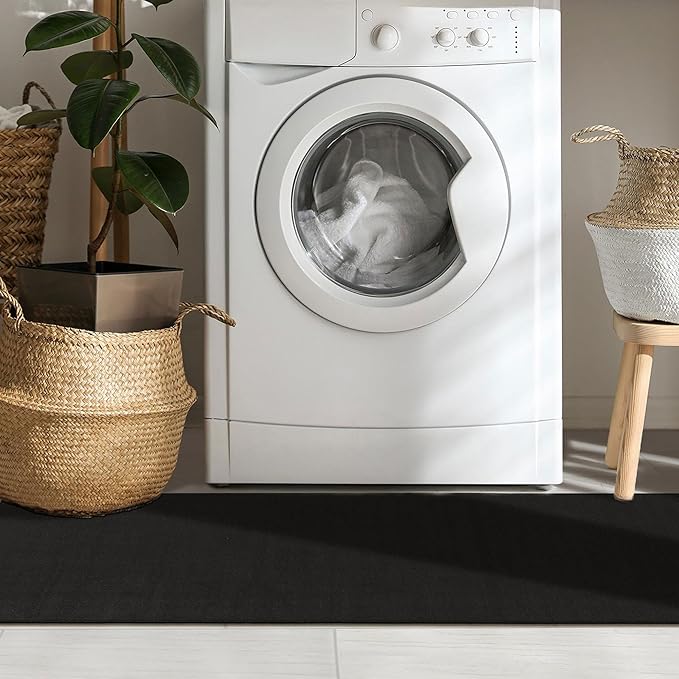 Machine Washable Modern Solid Design Non-Slip Rubberback 2x12 Traditional Runner Rug for Hallway, Kitchen, Bedroom, Living Room, 1'10" x 12', Black