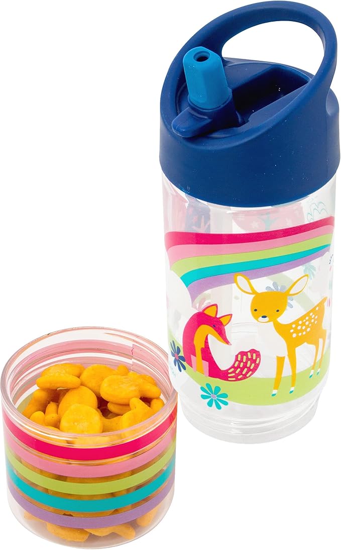 - SPECIAL FEATURES: Each bottle comes with a screw on bottom to fit snacks so it’s perfect to carry on-the-go. The flip top prevents leaks & keeps the straw clean.