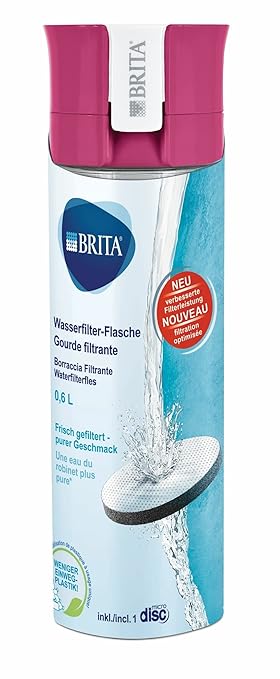 BRITA Fill and Go Vital Water Filter Bottle, Pink, Pack of 1