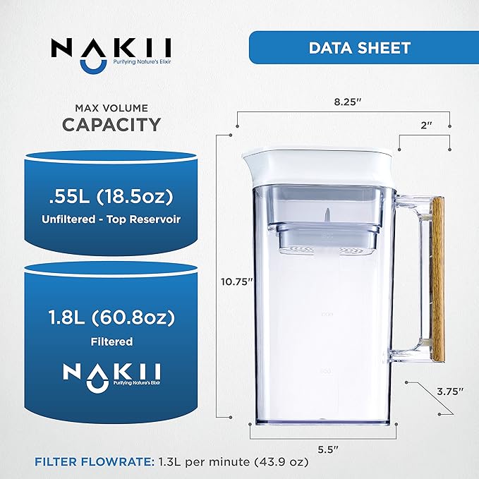 - LONGEST LASTING – 150 GALLONS – 4 TIMES MORE THAN OTHERS! The NAKII pitcher filter is created with high quality material that handle water contaminants on a higher level hardly comparable that's why it has a lifespan of 150 gallons 4 times more than brita and any other brand in the market