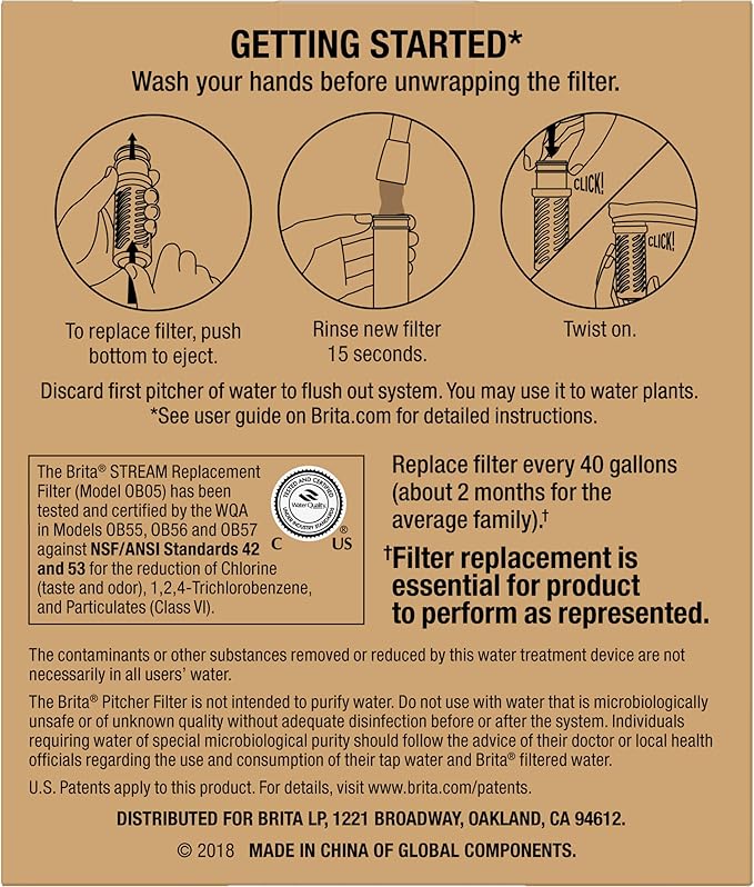 - FILTER-AS-YOU-POUR: Brita Stream filters feature patented Filter-As-You-Pour technology, which means no waiting at the sink when you fill your water filtration pitcher
