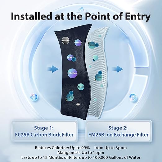 - Advanced Iron & Manganese Removal: Our second-stage FM25B iron water filter is uniquely designed for iron and manganese removal. It effectively reduces iron (max 3.0 ppm) and manganese (max 1.0 ppm), ensuring optimal performance.