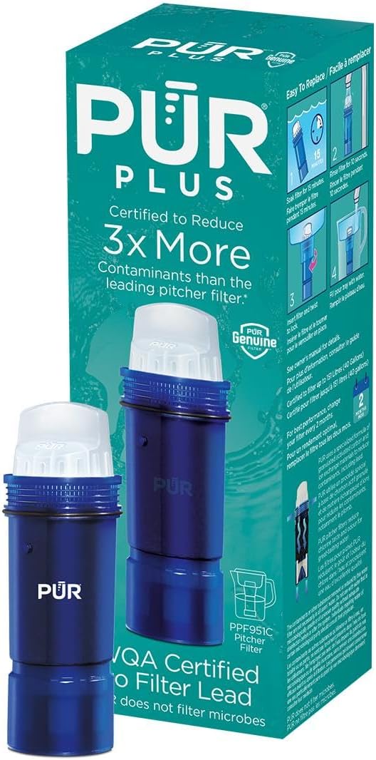 - LONG LASTING - each PUR PLUS Water Pitcher & Dispenser Replacement filter is engineered for up to 40 gallons of cleaner water filtration or 2-months of regular use.