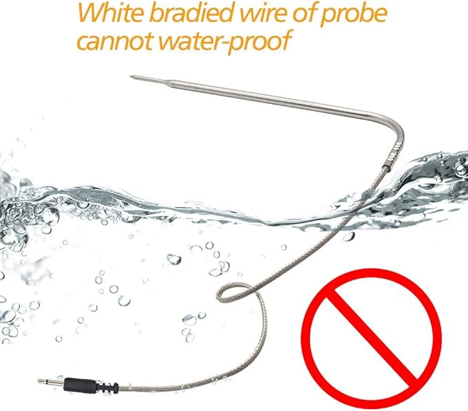 - 【Notes for This 2 probes Bluetooth Grill Thermometer】Please make sure the Bluetooth meat thermometer probes are firmly inserted into the Wireless BBQ thermometer ports. You may hear a click sound. Otherwise will get inaccurate temperature. For example, the thermometer meat temperature may display 572F or other inaccurate readings if the probes didn’t insert well. Temperature range: 32° F to 572 ° F; (Short-time measurement); 32° F to 482 ° F (continuous monitoring)