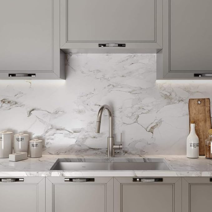 - INSTANT STYLE UPGRADE: A striking kitchen sink faucet with sprayer and streamlined design that works well for any kitchen sink.