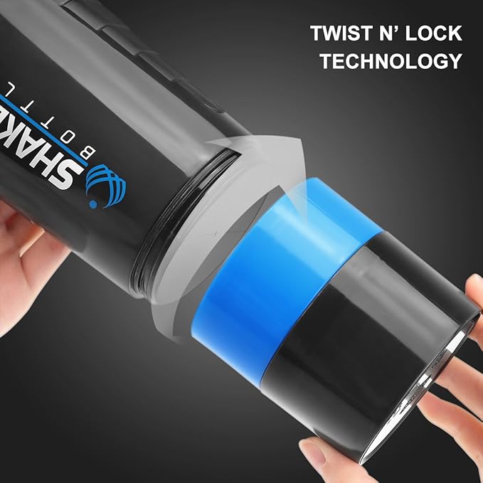 Protein Shaker Bottle - Sports Water Bottle - Non Slip 3 Layer Twist Off 3oz Cups with Pill Tray - Leak Proof Shake Bottle Mixer- Protein Powder 22 oz Shake Cup with Storage