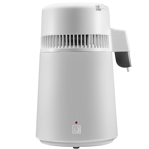 VEVOR 1.1 Gal Water Distiller, 750W Distilled Water Machine, 4L Distilling Pure Water Machine w/Plastic Container, Water Distillation Kit w/Button, Countertop Distilled Water Maker for Home (White)
