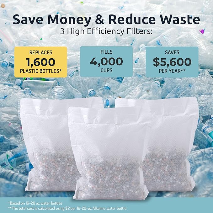 - IMPROVES TASTE & SMELL, EASY TO USE - Removes heavy metals, chlorine, and some fluoride to give you refreshing, great-tasting water. Whether it’s for drinking, cooking, brewing coffee or tea, our filters are easy to use and reliable. Simply open the pouch, soak the filter and enjoy purified alkaline water anytime & anywhere with utmost ease.