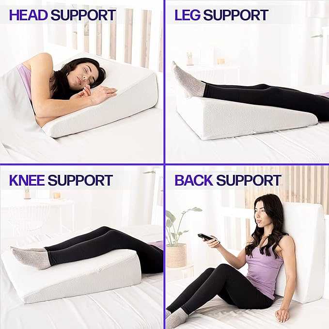 - In Sickness and Health: Do you suffer from allergies, heartburn, acid reflux, or back and neck pain? We’re here to help! Our customers use our wedge support pillow with their other favorite pillow (such as a shredded memory foam pillow) to aid in better circulation, less sickness, and better sleep.