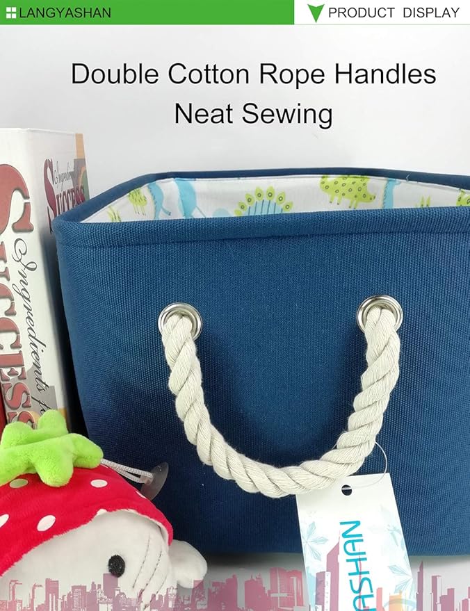 LANGYASHAN Rectangular Storage Bin Collapse Canvas Fabric Cartoon Storage Basket with Handles for Organizing Home Kitchen Boys and Girls Toys Office Closet Shelf Baskets (Navy Toys)