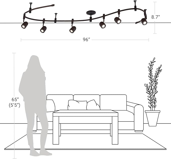 - · EASY ASSEMBLY: Measuring 96" x 8.70" x 4.33" total, this versatile fixture can be mounted to any standard ceiling or wall junction box from its center canopy and connected to a standard dimmer for further lighting customizations