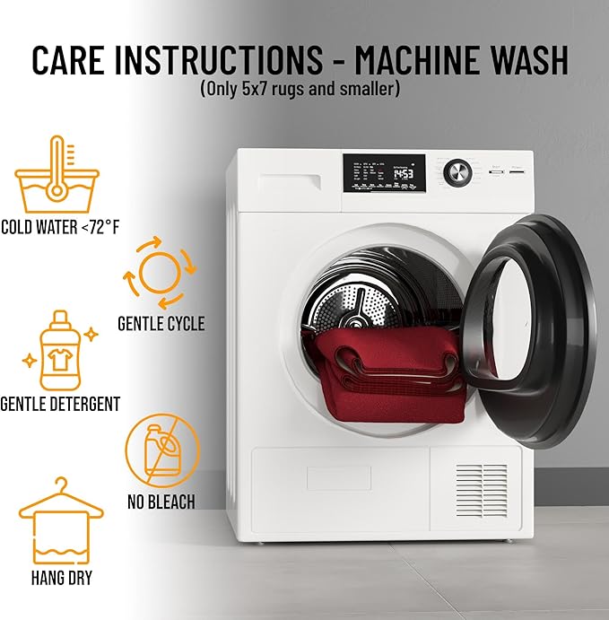- [EASY CARE]: Stress free cleaning includes regular vacuuming (no brushes/rollers) and gently spot cleaning out minor stains with mild detergent or carpet cleaner. Creases and curling should flatten with 5-7 days of regular use. To expedite this process, reverse roll the corner with the crease and gently apply pressure.