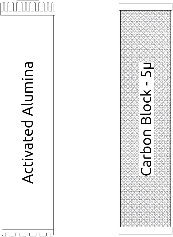 - Complete System - Mounting Bracket, UPGRADED PENTEK Housings with 1" In/Out, Housing Wrench, Carbon block filter (5µ), Activated Alumina Filter