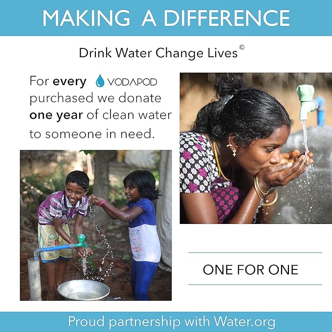 - 💧Drink Water, Give Water & Change Lives – Give the gift of water! With each VODAPOD bottle sold, we will donate one year of access to safe water to one person in the developing world. By hydrating with a VODAPOD bottle you’ll be making a difference in the life of someone less fortunate.