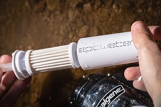 - FILTERED WATER BOTTLE (LEAD WATER FILTER): This Nalgene water bottle with filter uses depth & adsorption filtration to be the perfect water purifier. Adsorption removes particulates via the activated coconut carbon fiber mesh surface areas, which adsorbs contaminants such as cysts, heavy metals, chemicals & pharmaceuticals. Depth filtration (6mm thick) involves the removal of suspended waste products as they try to pass through the millions of layers of coconut carbon fiber block.