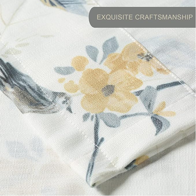 Leeva Birds Vines Printed Semi-Blackout Curtains Valances for Kitchen Bath Laundry Bedroom Living Room, Rod Pocket Valance for Windows, 52 x 18 Inch, Grey Birds, One Panel