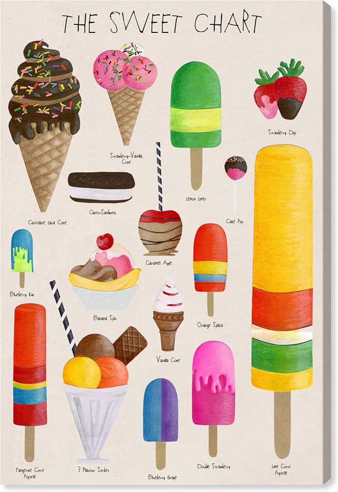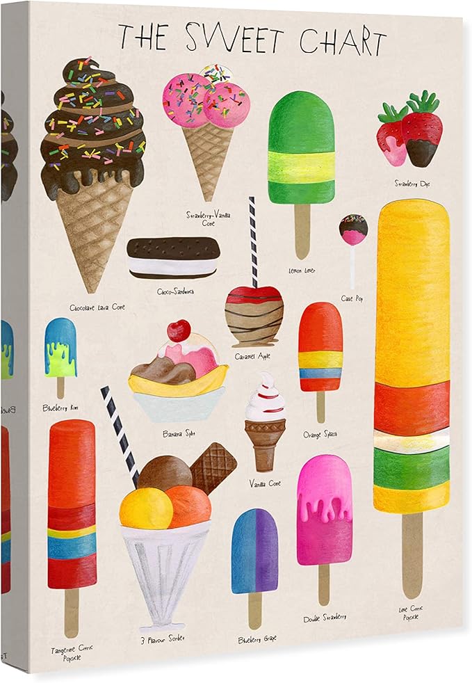 The Oliver Gal Artist Co. Kitchen Food Wall Art Canvas Prints for Kids Room 'The Sweet Chart' Childrens Bedroom Décor, 16" x 24", White, Red