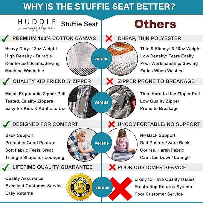 - Invest in the best: Made from thick 100% cotton canvas for superior durability and shape retention; Huddle's stuffed animal storage bean bag offers sturdy seating that lasts