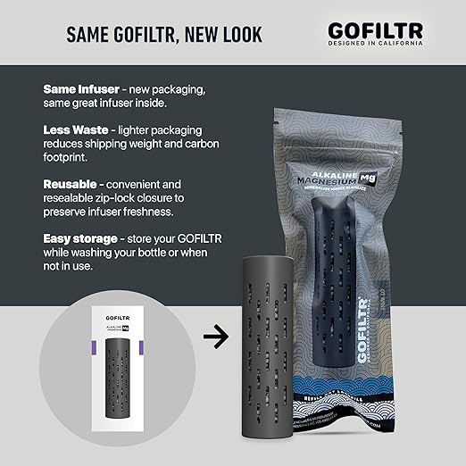 - REPLENISH, RECOVER, REHYDRATE - GOFILTR Magnesium Alkaline Infuser is a well balanced mineral water alkalizer and ionizer that enriches your water with magnesium, electrolytes and other beneficial minerals, creating fresh mineral ionized alkaline water with a pH level of up to 9.5 for optimal everyday hydration and recovery.