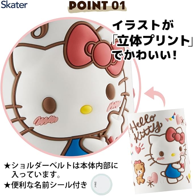 Skater SDPV5-A Children's Stainless Steel Water Bottle, Direct Drinking, 16.2 fl oz (480 ml), Kitty Snack Time, Kid-friendly Lightweight Type, For Girls, Cold Insulation, Sanrio, 3D Printed