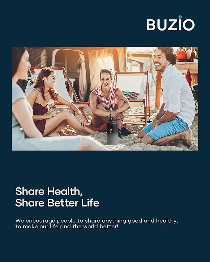 - What You Get: Included with a BUZIO insulated water bottle, a straw lid (2 straws), a flex cap, and a cleaning brush, our worry-free lifetime warranty and friendly customer service. If for any reason, you are not 100% satisfied with product, we will offer a full refund or an exchange!