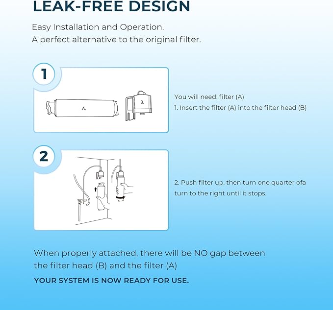 - Exquisite Design: Easy to install and operate. You can enjoy maximum water filtration without taking up a lot of cabinet space.