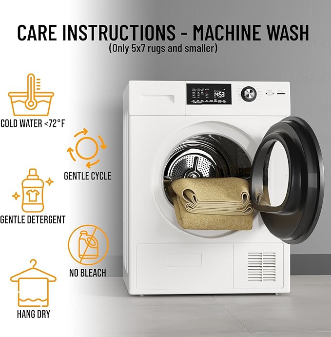 - Care Instructions: Vacuum regularly and spot clean with damp cloth, DO NOT machine wash. DO NOT use strong liquid cleaners or hot water.