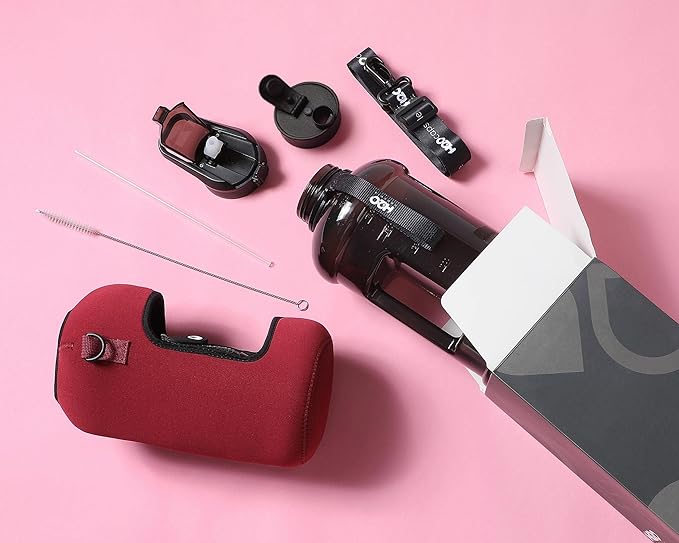 - HALF GALLON HYDRATION WITH COVERED STRAW LID: The extra large 2.2L / 74 oz plastic jug holds all the water you need to stay hydrated while you exercise. The reusable half gallon comes with a leak-proof & dust-proof covered straw lid, which helps protect the mouthpiece and flips open with a click of a button. The straw-lid is air-sealed: Run straw brush through mouth piece before initial use. The H2O Capsule bottle with storage sleeve comes with a bonus straw cleaning brush.