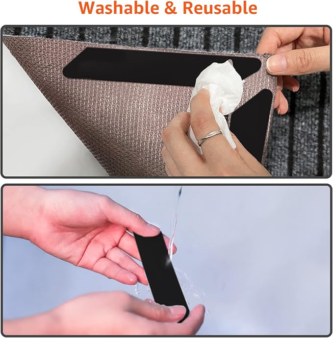 - 🌈【NO RESIDUE AND DAMAGE】This rug stoppers designed by premium updated adhesive technology, without the residue of the paste when removed it, you don’t need to worry about the damage for your floor, please take it easy to use it on hardwood floors, tile floors, laminate, marble, concrete, rubber, wall etc.