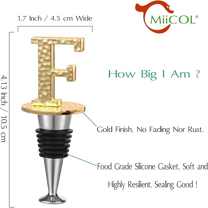 - Fashionable and Practical - The MiiCol wine stopper features a stylish design with personalized initials, adding a pop of color to any table setting. Its distinctive lettering helps identify different wines or owners, making it an ideal gift for special occasions.
