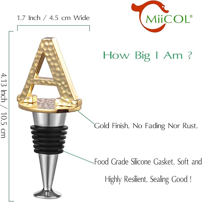 • Fashionable and Practical - The MiiCol wine stopper features a stylish design with personalized initials, adding a pop of color to any table setting. Its distinctive lettering helps identify different wines or owners, making it an ideal gift for special occasions.