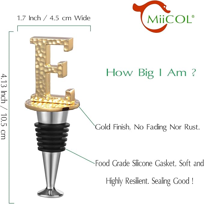 • Fashionable and Practical - The MiiCol wine stopper features a stylish design with personalized initials, adding a pop of color to any table setting. Its distinctive lettering helps identify different wines or owners, making it an ideal gift for special occasions.