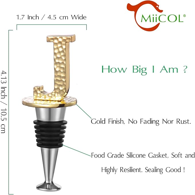 - Fashionable and Practical - The MiiCol wine stopper features a stylish design with personalized initials, adding a pop of color to any table setting. Its distinctive lettering helps identify different wines or owners, making it an ideal gift for special occasions.