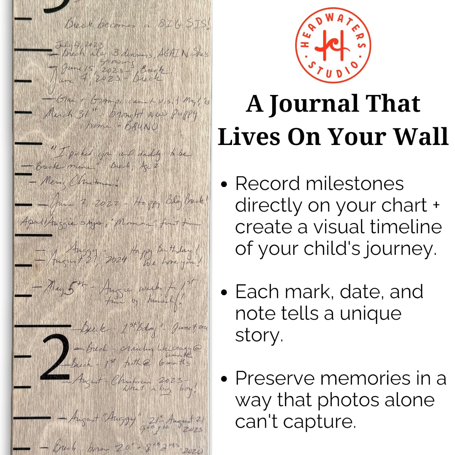 - Easy to Personalize: Designed for marking with a Marker to create lasting memories with your family! Handcrafted to last, our growth charts won’t fade or off-gas like doorframes or paper charts.