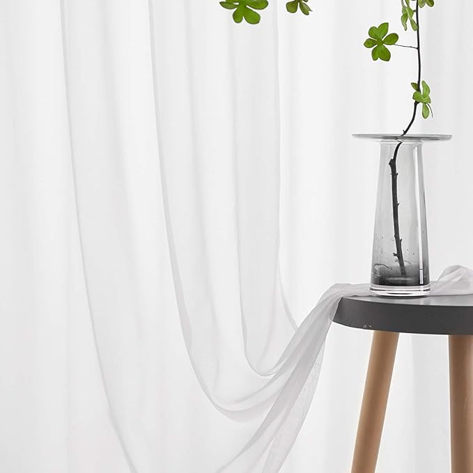 - 1. Upgraded version of translucent special fabric for sheer voile window treatments: fabric warp and weft is tight; environmentally friendly without odor; meticulous workmanship, fully stitched and hemmed on all edges and carefully sewn; stitches are straight, to obtain a fuller drape in the sheer voile curtains
