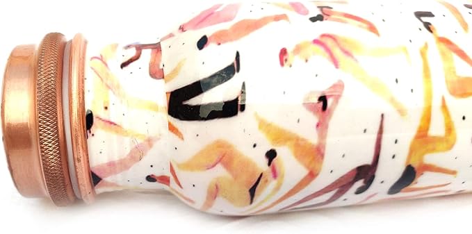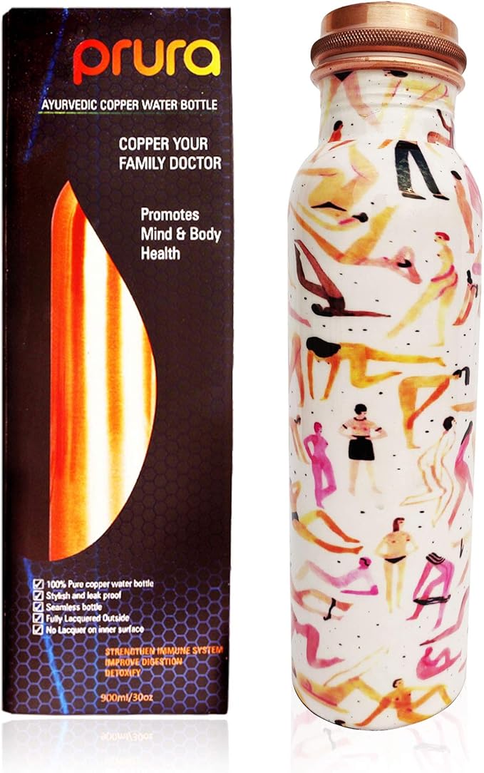 Pure Printed Copper Water Bottle - Leak Proof Ayurvedic Drinkware Copper Vessel for Sports, Gym, Outdoors, Yoga, Health Benefits (30 oz)