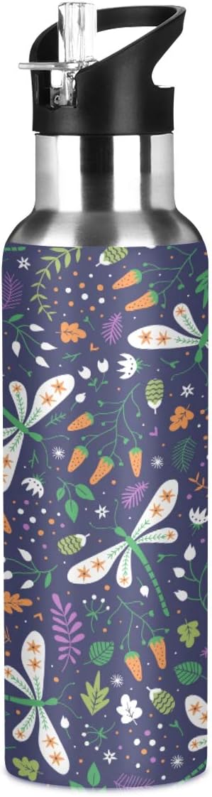 Blueangle Berries and Dragonflies Sports Water Bottle 22 OZ BPA Free Leakproof Water Bottle for Fitness Gym Camping Outdoor Sports