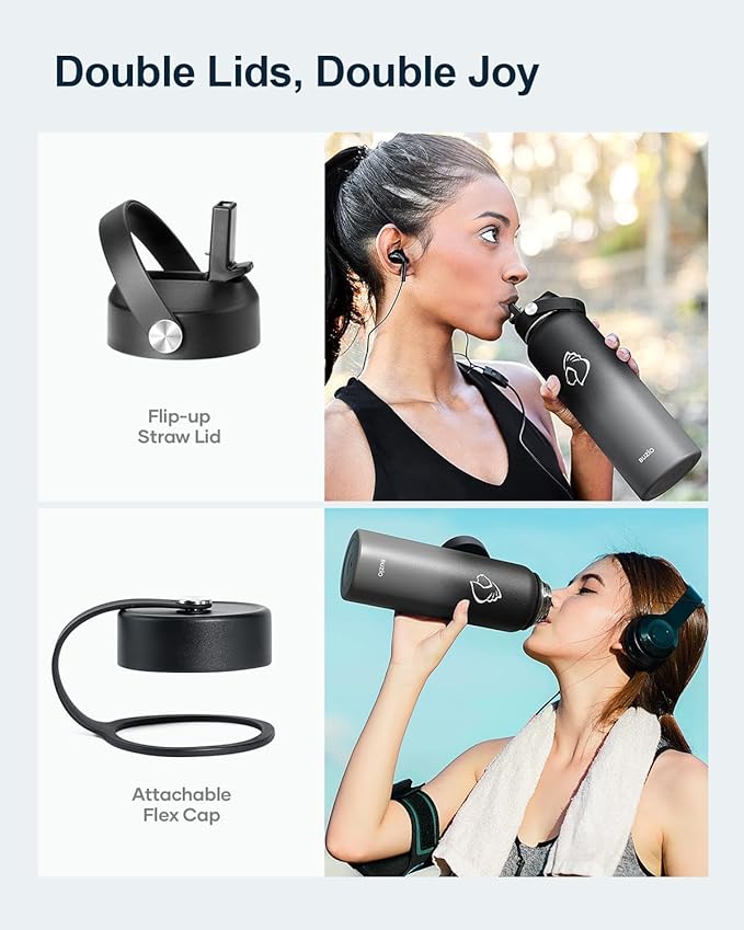 - What You Get: Included with a BUZIO insulated water bottle, a straw lid (2 straws), a flex cap, and a cleaning brush, our worry-free lifetime warranty and friendly customer service. If for any reason, you are not 100% satisfied with product, we will offer a full refund or an exchange!