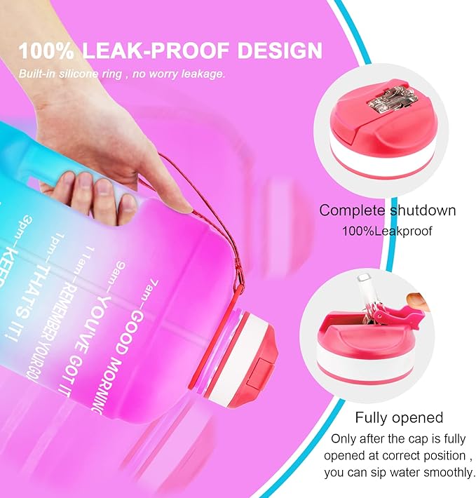 - 【LARGE CAPACITY】With large capacity(128 oz) let you enjoy one full motivational water bottle without having to refill it frequently. 128 oz water bottle featured with transparent appearance help you check the actual amount of water intake easily and clearly.