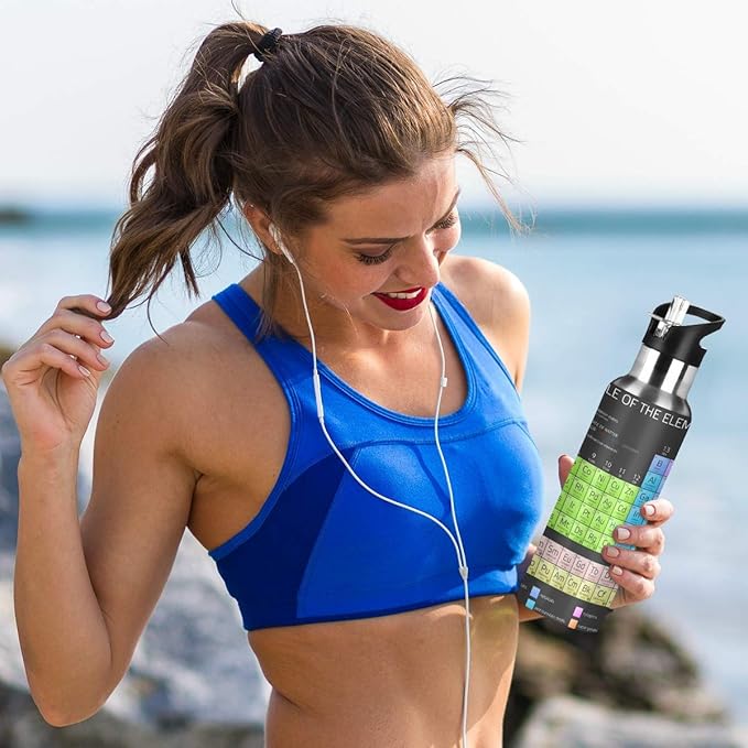 Periodic Table Of The Elements Water Bottle with Straw Lid for Fitness Gym Camping Outdoor Sports, Wide Mouth Vacuum Insulated 18/8 Stainless Steel, 22 oz